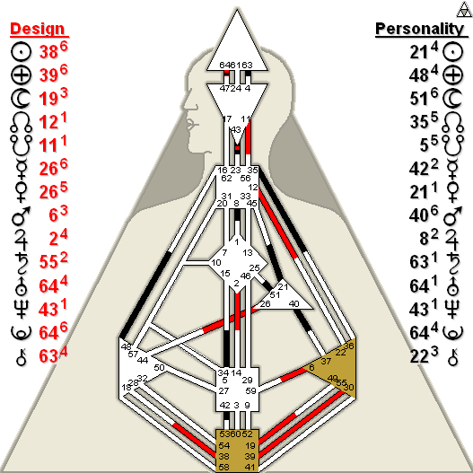 A few other significant and relevant energies he had were aloneness (Gate 40), fighting for a good cause/fighting for the underdog (Gate 38), friction (Gate 6), abundance of spirit (Gate 55), and the issue of having integrity or not (Gate 26).
