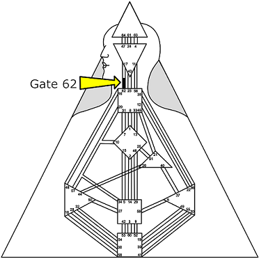 If you have the Gate 62 defined in your chart, you have an eye for detail and are good at organization (though this may be selective—you may not be organized in all areas of your life, just in some). You are able to communicate complicated information with logic and clarity, and fascinate others with your knowledge.
